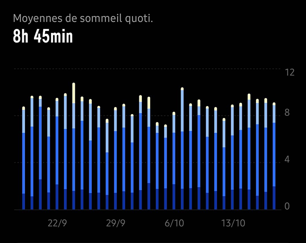 - Examine ton temps de sommeil total moyen mensuel et évalue si tu dors suffisamment.