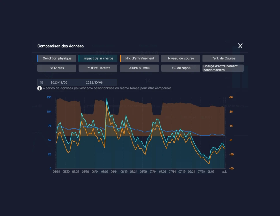 L’évolution de l’intensité peut être vue et mesurée grâce au graphique de Niveau d’entraînement.